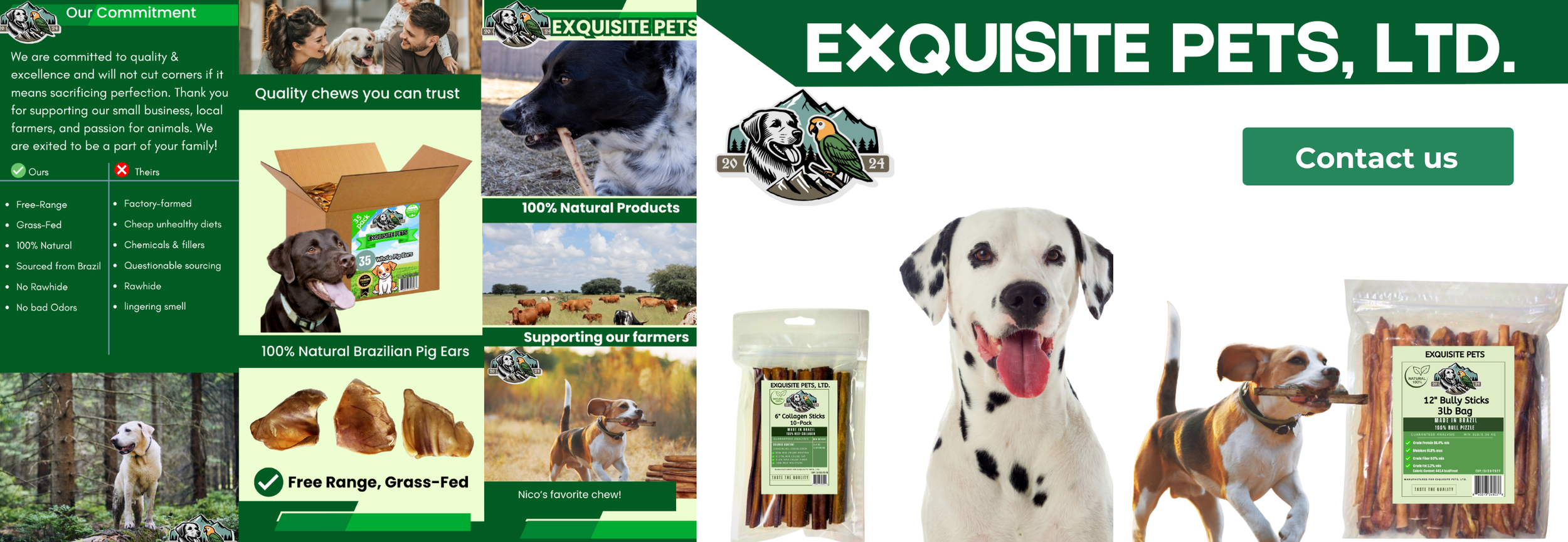 At Exquisite Pets, our mission is to enhance the bond between you and your dog by offering premium, all-natural treats you both can trust! Sourced ethically from grass-fed, free-range farms in Brazil, our products reflect a commitment to simple, wholesome nutrition—because we believe that happy, healthy pets start with clean, transparent ingredients. Each treat is thoughtfully crafted with care, integrity, and an unwavering dedication to your dog’s well-being. We sincerely appreciate your continued support.